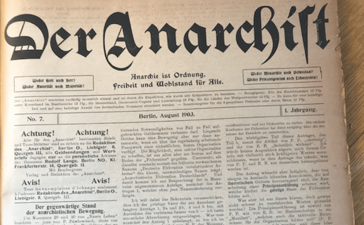 This terrific two-part guest post comes from Aileen Lichtenstein. Aileen is starting her third year of her PhD in History at the University of Glasgow. Her fascinating research examines the transatlantic connections of German anarchism in Berlin, London and New York between 1880 and 1914. She is especially interested in how people and ideas circulated between those three cities, how radicals have built communities in exile, and the newspapers they printed.