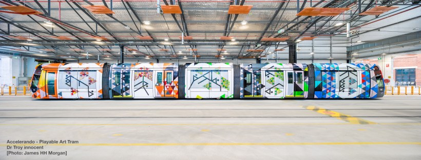 The role of Digital Placemaking in the future of ‘playable cities’ and ‘smart cities’ concepts is also important. Dr Troy Innocent, a VC Senior Research Fellow at RMIT, urban play scholar and artist game-maker referenced Boyd Cohen’s three generations of Smart Cities, and how the ‘smart city’ concept has evolved to include more socially driven and co-created, participatory approaches from its technocratic origins, to argue that ‘smart cities 3.0’ is essentially a ‘playable city’. This demonstrates the success of the playable cities movement as a viable alternative to the technological determinism of earlier iterations of the smart city concept. Dr Innocent’s presentation and work focussed on ‘playable cities’, including the use of AR combined with public art as a digital storytelling and place-making tool, bringing together communities to transform their experiences of the urban environment. For example, Wayfinder Live is a multi-player game which incorporates AR experiences triggered by pieces of visually stunning abstract geometric public art that act as ‘urban codes’ (similar to a QR code) within the physical environment. Together, these create a route for traversing, exploring, and reimagining experiences of the city via these key destinations. Similarly, Accelerando – a playful transformation of Melbourne’s public transit infrastructure, launched in 2018, uses public art displayed on the surface of a tram and links this to a downloadable app that creates variable musical scores dependent on the tram’s speed whilst moving past participants’ mobile phone screen.