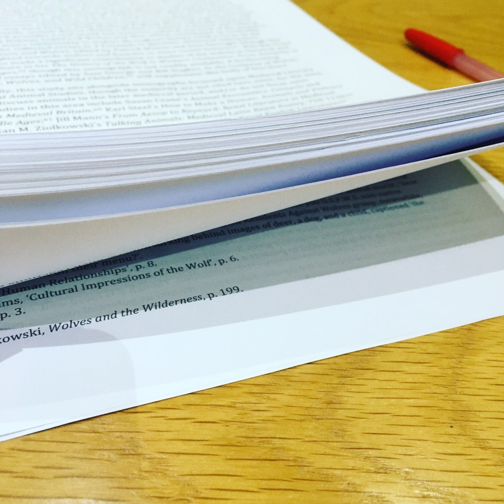 Luckily, I have something to distract me – I’m also working on a commissioned book project about the history of wolves in Britain and Ireland. It’s intended for a commercial audience and so is less academic in tone than my other book, but is still contingent upon rigorous research. I’ve been working on this project for just over a year now, but it’s still strange to be writing more about facts than offering my own analyses and opinions, and in such a different style than my academic work.