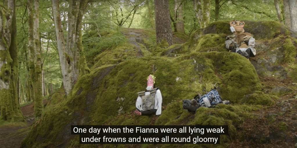 I’ve been interested in these stories for a while. I love how surreal they are! The graphic violence that ensues because of the slightest argument between these warriors is exceptionally funny and cartoonish! There is a timeless nature to these stories of human pride, frustration and impulsiveness. I have previously experimented with these notions in a puppet film I made in 2021, called an Duan fo Ghlas- the Fianna in a Time of COVID. Just what did Fionn and his warriors do during lockdown??
